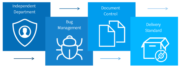 In order to ensure the quality of the process and products, we established independent department to support high quality software development activities. SQA support the delivery of high-quality products by providing project staffs and managers with appropriate feedback reports of processes and products throughout the life of the project.
