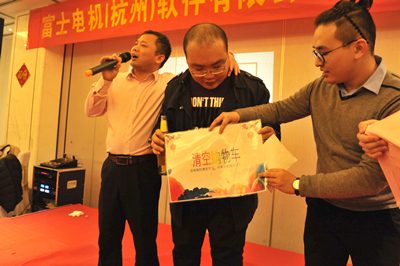 2017年度忘年会 2018年1月19日に、新開元大酒店莫干山路店において、当社2017年度の忘年会が開催されました。的場総経理が優秀社員に表彰状と賞金を授賞し、そして、恒例のゲームと賞品抽選行って、忘年会の雰囲気が盛り上がりました。